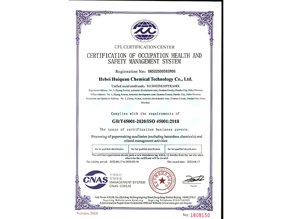 職業(yè)健康安全管理體系認證證書(英文版)
